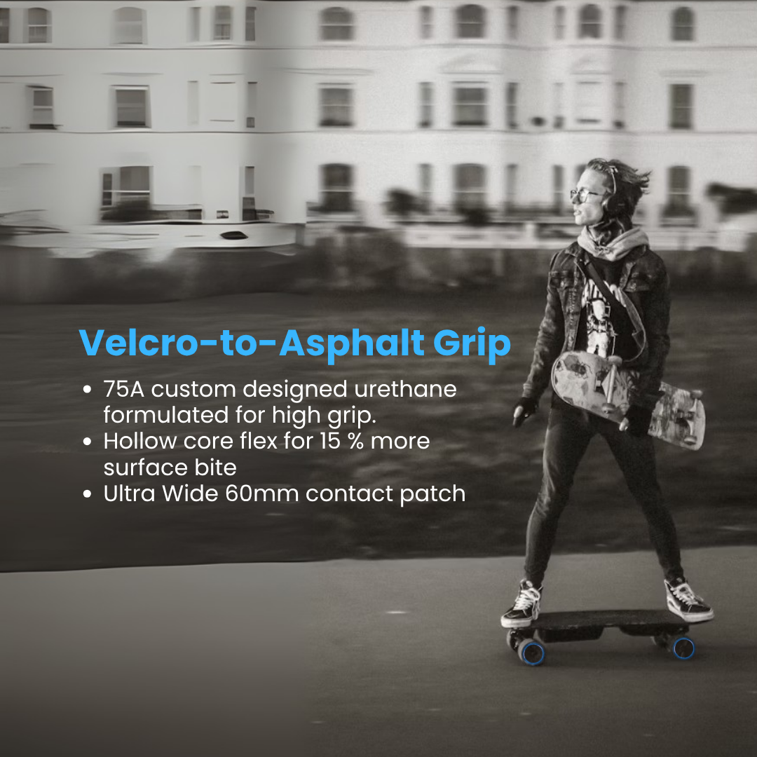 Ultimate in Grip and Comfort for Long Boards and Electric Skateboards. 4 Wheels included.